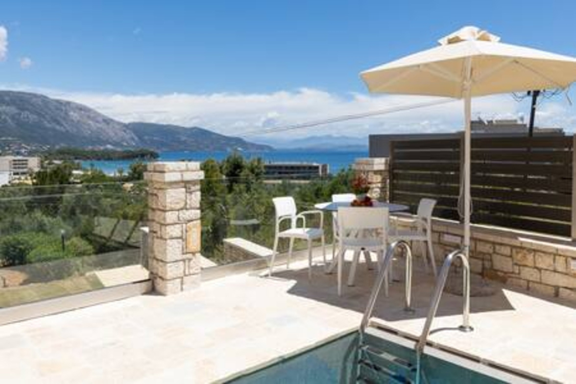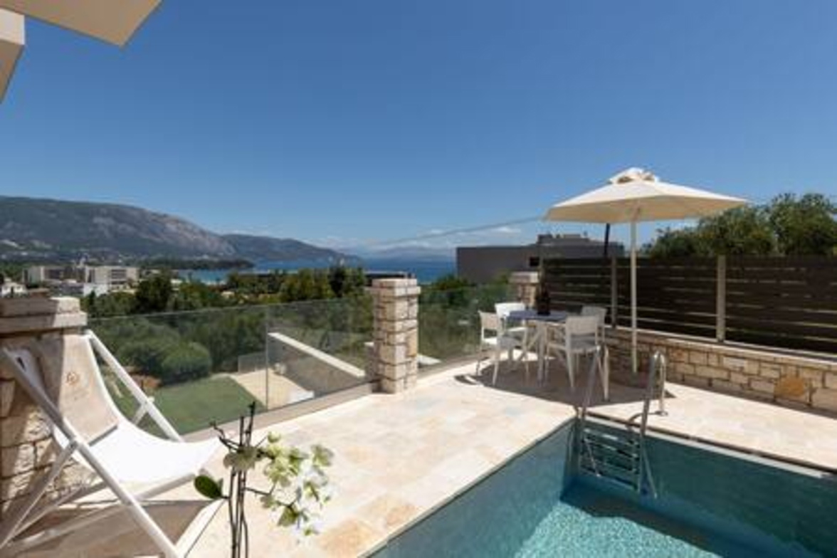 Onore Luxury Suites - Sunset Suite, is a 2021 fully renovated two bedroom first floor apartment with private pool, kitchen and modern bathroom, with elegant decoration and relaxing atmosphere! Onore Luxury Suites, newly built, perched atop a hill overlooking Dassia, offer sea views and all the convenience of modern living, just a short stroll from Dasia village. Onore Luxury Suites offer high standards of hospitality and all the amenities you could ask for!